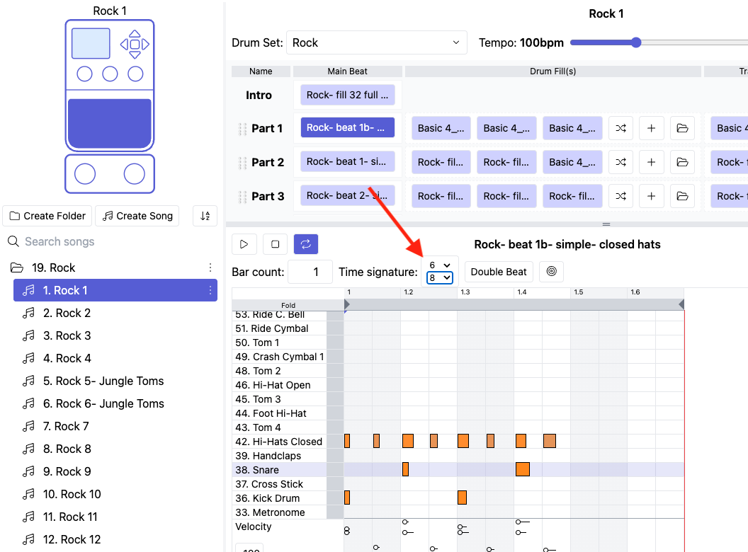 Or, you could just find a midi file for a song you want in 6/8, and strip out all the non-drum parts. Then, create a new song in BB Manager, and copy and paste your midi file into Main Loop 1 of the new song.