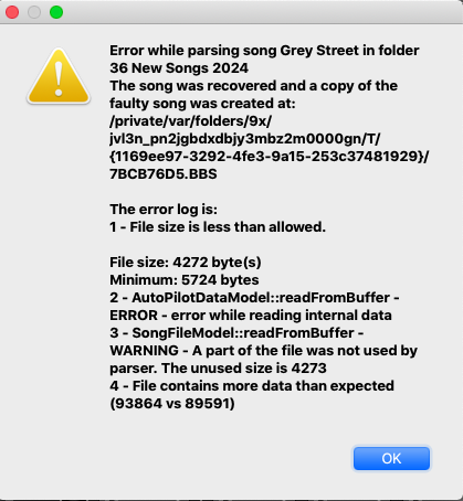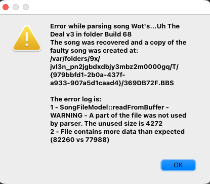 I have already lost a weekend’s worth of work done for my BB pedal because I am very afraid of these errors reported and being unable to open songs in BBMO, so I am delaying any real work for now.